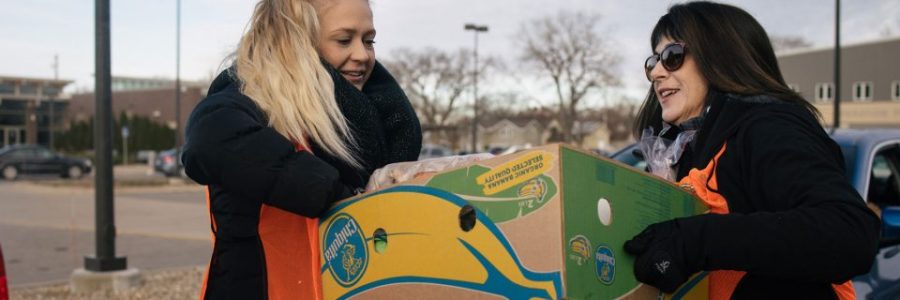 - Volunteers will safely place a prepackaged food box or bag there.