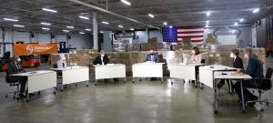 On Monday, March 22, Secretary of Agriculture Vilsack, Second Gentleman Emhoff and Representative Cindy Axne visited Food Bank of Iowa to speak with president and CEO Michelle Book, partners, volunteers and staff.